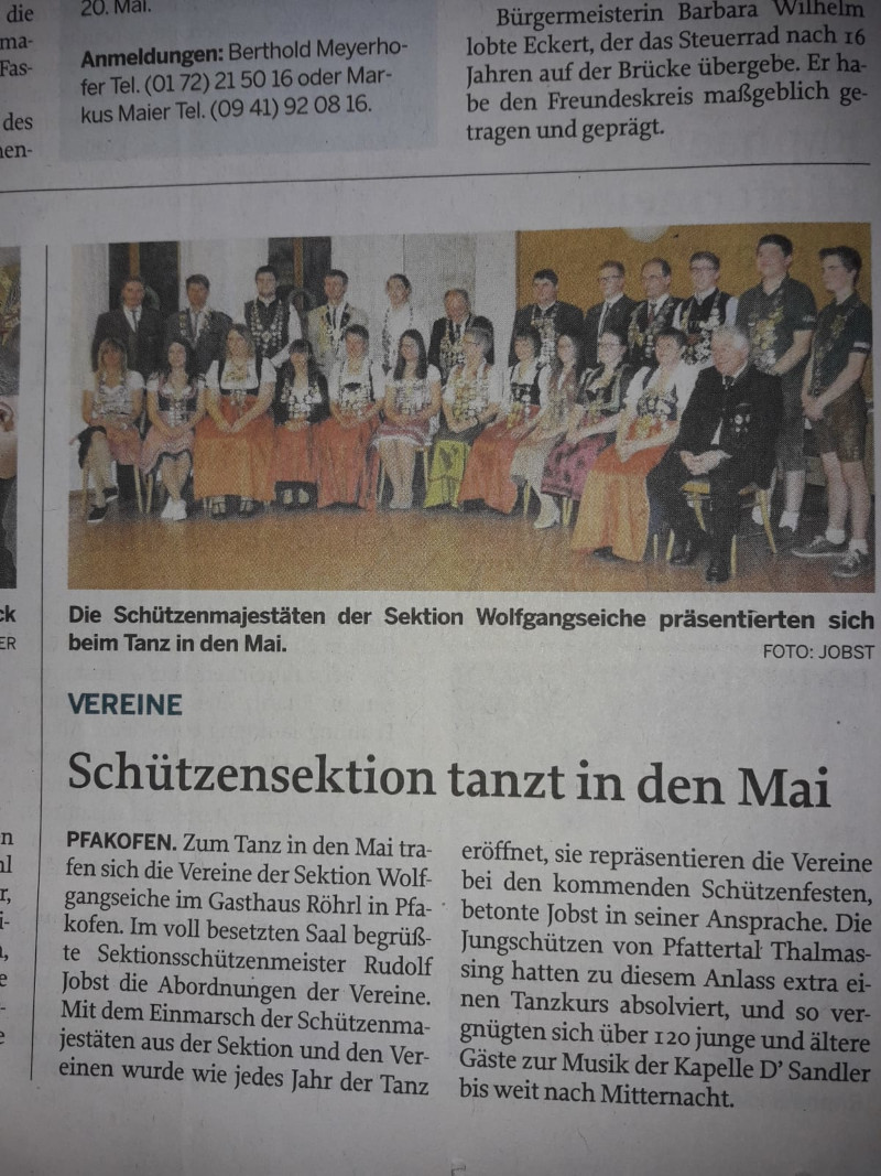 Gemeinsam mit sieben weiteren Vereinen der Sektion „Wolfgangseiche“ treffen sich die Schützen zum Sektionstanz: